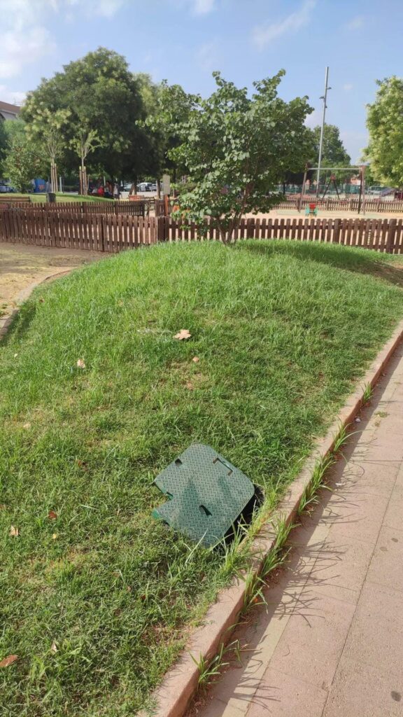 Claveguera embossada al carrer Enric Morera al costat del Parc d’Andalusia