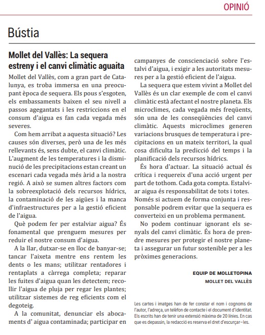 Mollet del Vallès: La sequera estreny i el canvi climàtic aguaita