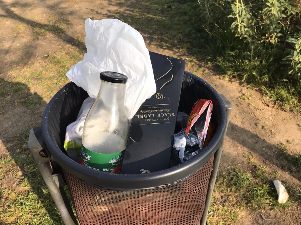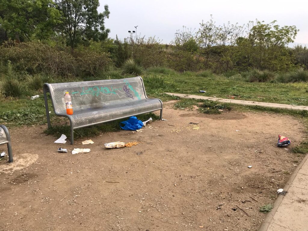 A causa dels botellons que es realitzen diàriament, es pot trobar ampolles d’alcohol i fins i tot paperines de droga a les papereres. Hi ha bosses amagades entre els arbustos per tal de recollir-los un altre dia i continuar amb la seva “festa particular”.